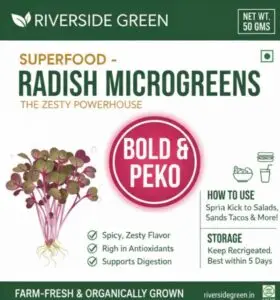 Broccoli Green: Broccoli Microgreens contains lots of essential vitamins and nutrients. Its sprouts are the healthiest of all sprouts and are 40x more nutritious than broccoli itself. It also contains vita A, B & C. It is excellent when added to your fav sandwiches to add a tasty crunch with clean and fresh flavors.