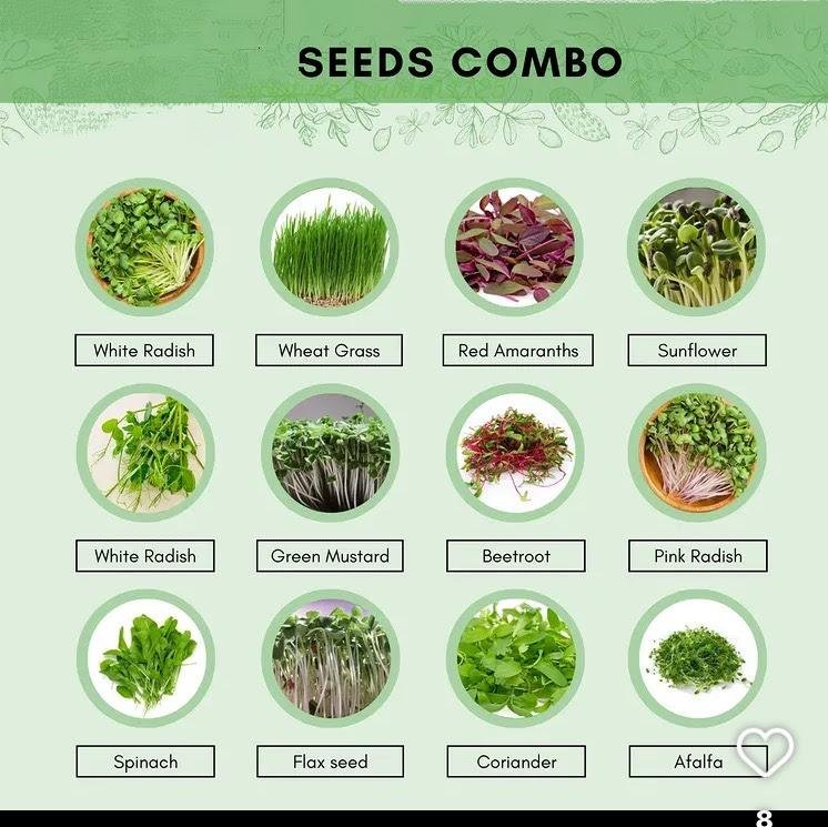 Fenugreek (Normal): They are a good source of nutrients, including vitamins A, B, C, iron, and other minerals. Fenugreek microgreens have a slightly peppery, mild flavor and are versatile in salads, soups, curries, and other dishes.